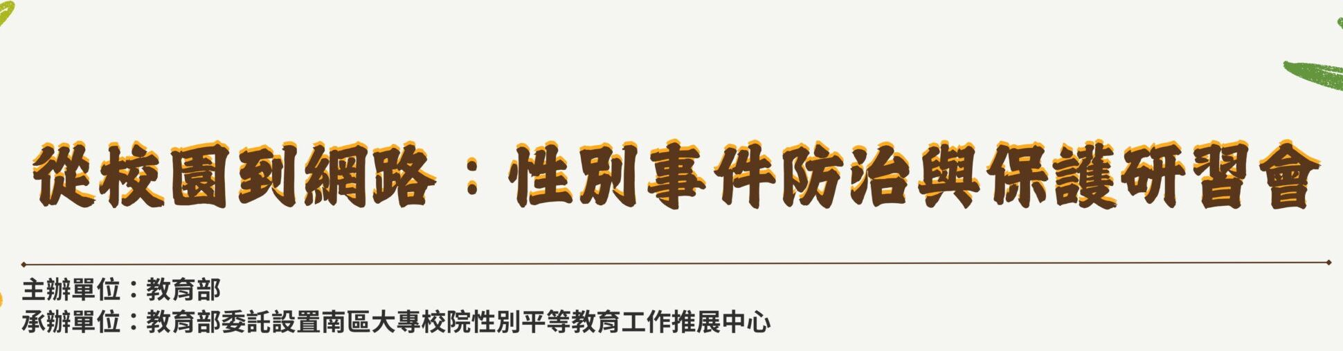 為持續提升南區大專校院性別平等教育委員會相關人員於校園性別事件防治及行政程序處理等方面的專業判斷與敏感度,特規劃本次研習活動。